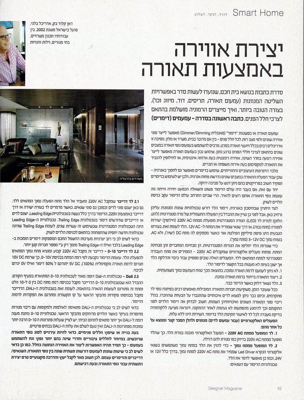 סדרת כתבות בנושא בית חכם, שנועדו לעשות סדר באפשרויות השליטה המגוונות (עמעום תאורה, תריסים, דוד, מיזוג וכו'), בצורה הטובה ביותר, ואיך מייצרים הרמוניה מושלמת בהתאם לצרכי חלל הפנים.